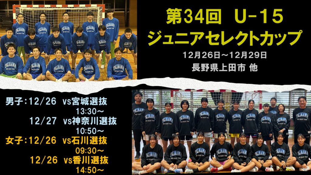 第34回U-15ジュニアセレクトカップ九州予選会で、男子沖縄選抜が優勝、女子沖縄選抜が第3位になり、全国大会(12/26-29:長野県)の出場権を獲得しました。